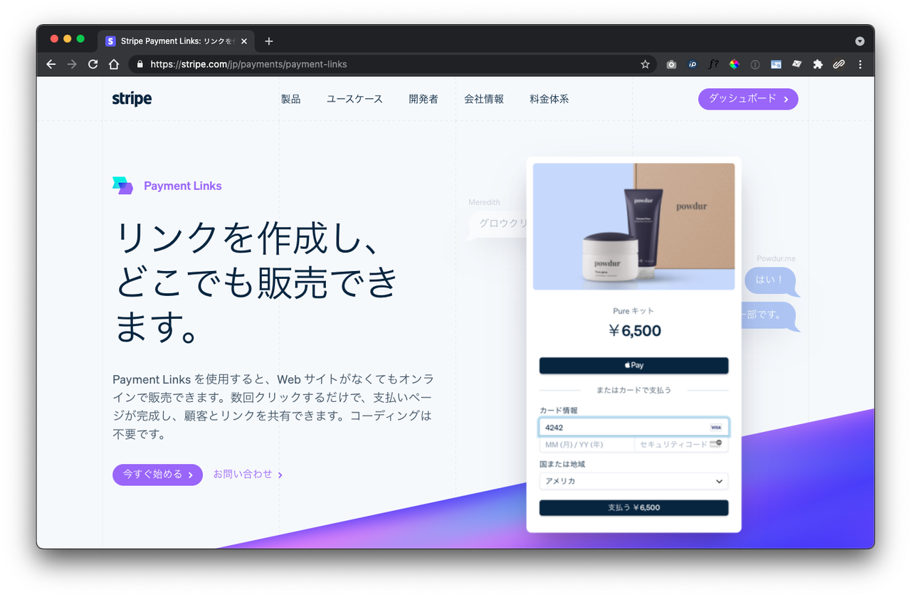 (Stripeのサポートは迅速でかつ、日本語でやり取りできるとのことだったので一度試してみたかった)